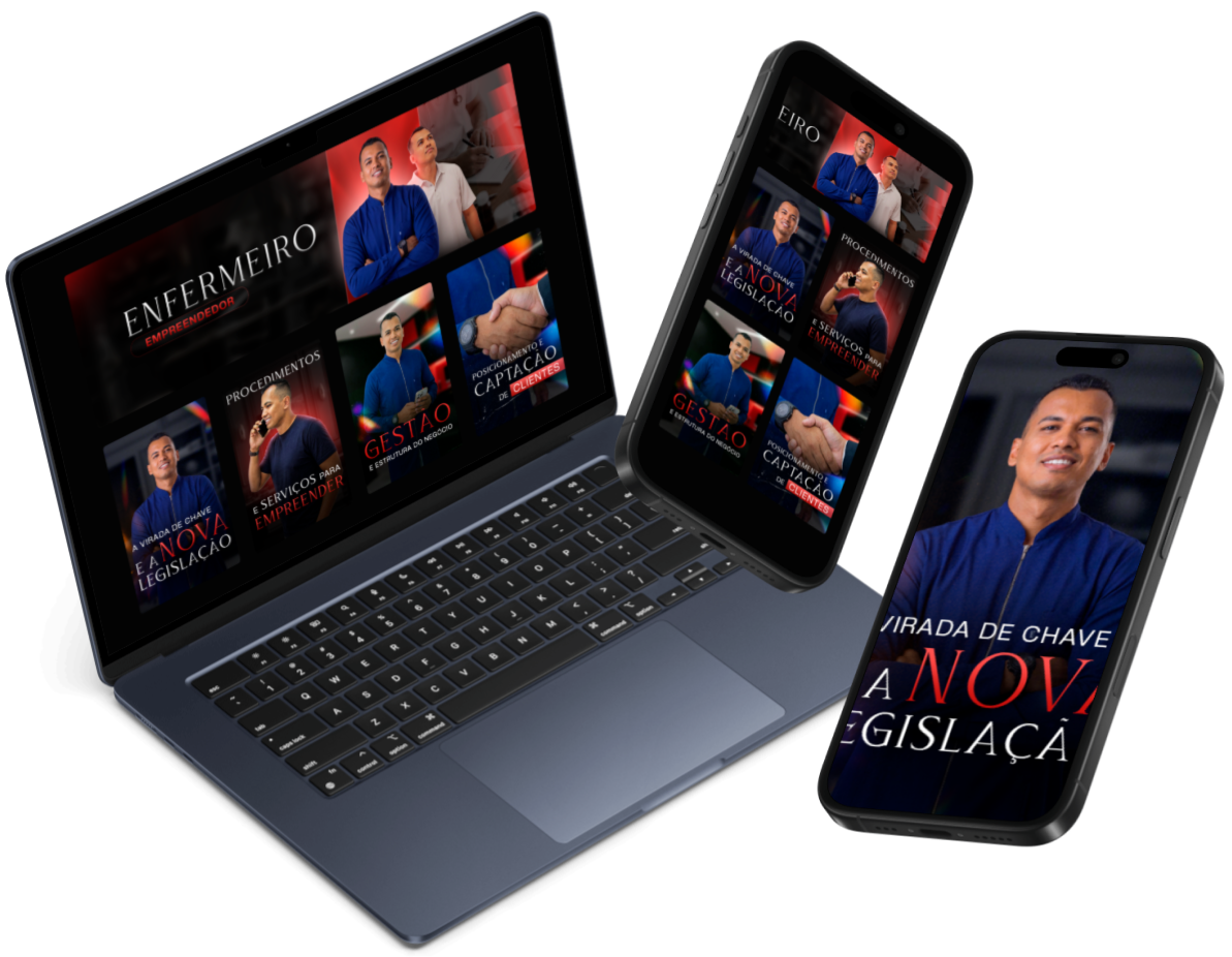 Além disso, mantém um negócio altamente rentável de injetáveis, soma experiência em cargos de gestão, serviço público municipal e atuação como bombeiro militar temporário, trazendo uma visão real, prática e aplicável da enfermagem empreendedora.